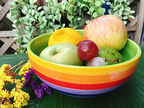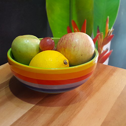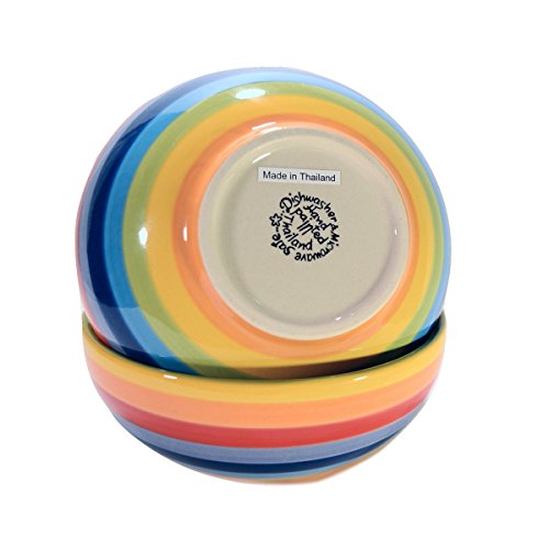 Hand-painted Colorful Striped Ceramic Stoneware Soup and Cereal Bowl, 6 Inch Set of 2, by CinMin