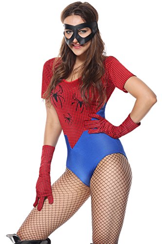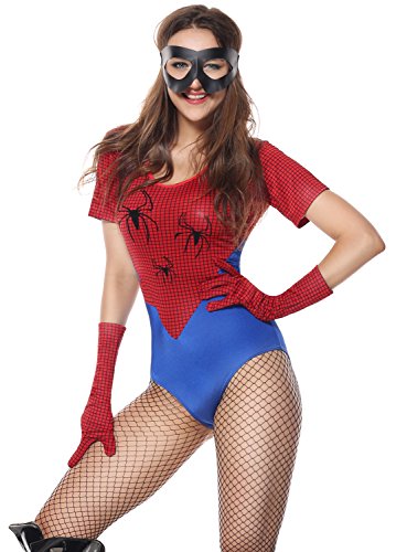 -. Brand : Lusiya -. Department : womens -. Feature : Please check our size chart details in Product Description / Hand Wash / Red and blue catsuit with spider details / Matching black eye mask and elbow length gloves, stockings not included / Sell Only by Lu Siya clothing -. ProductGroup : Apparel -. ProductTypeName : ADULT_COSTUME -. Title : Lusiya Women's Spiderman Hero Halloween Costume with Spider Web Print