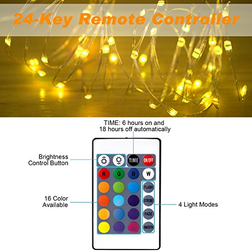 - •24-KEY REMOTE: More amazing 24 buttons, up to 16 colors options and 4 flashing modes, timer mode (8 hours on and 16 hours off).