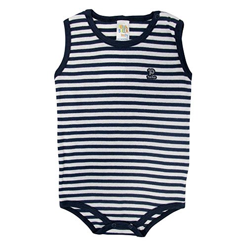 Feature : This light weight striped bodysuit comes in the color navy blue / The crew neck bodysuit features a woven label at the top of wearers left side / For toddlers age 3 years / Composed of 100% high quality cotton / Machine washable - Made in Brazil