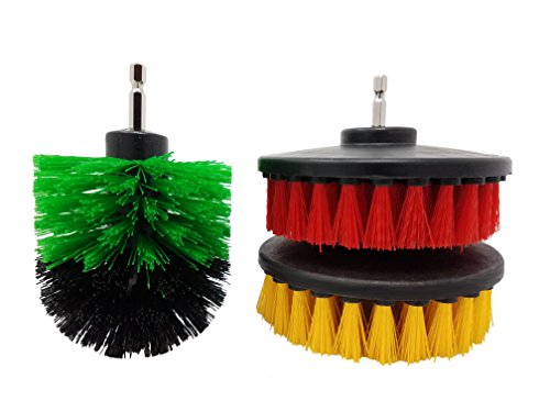 Drill Powered Scrubbing Brush, 3-Pack Stiff Brushes for Heavy Duty Cleaning in Bathrooms, Kitchens, Shower, Bathtubs, Grout, Auto Detailing, Rims and More