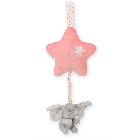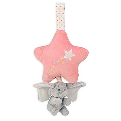 • Polyester / music box; Hangs 14'' L (17'' L when fully extended); Dumbo 4'' H