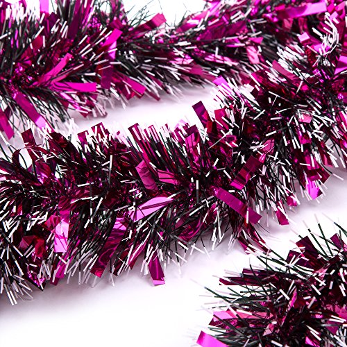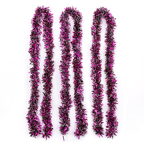 - Color: Classic Hot Pink. Snowy and Shiny metallic tinsel reflects light for extra sparkle.Pack of 3 Christmas Party Tinsel Garlands, each one is 2m/6.6 feet length.
