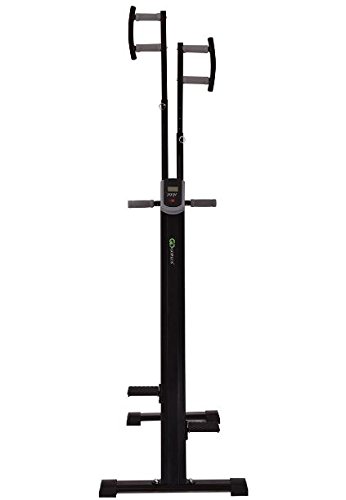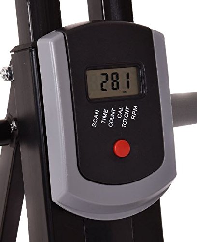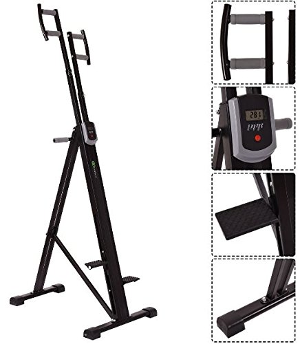 Color: Black Material: Iron LCD Display: Scan, Time, Count, Calorie,TOT.cNT, RPM Batteries: 2*AA (included) Product Dimension: 26"(L) x 37"(W) x 85"(H) Handrail adjustment height: 69"- 85" Product Weight: 47lbs Weight Capacity: 264 Lbs Product Included: 1 x Vertical Climber Machine