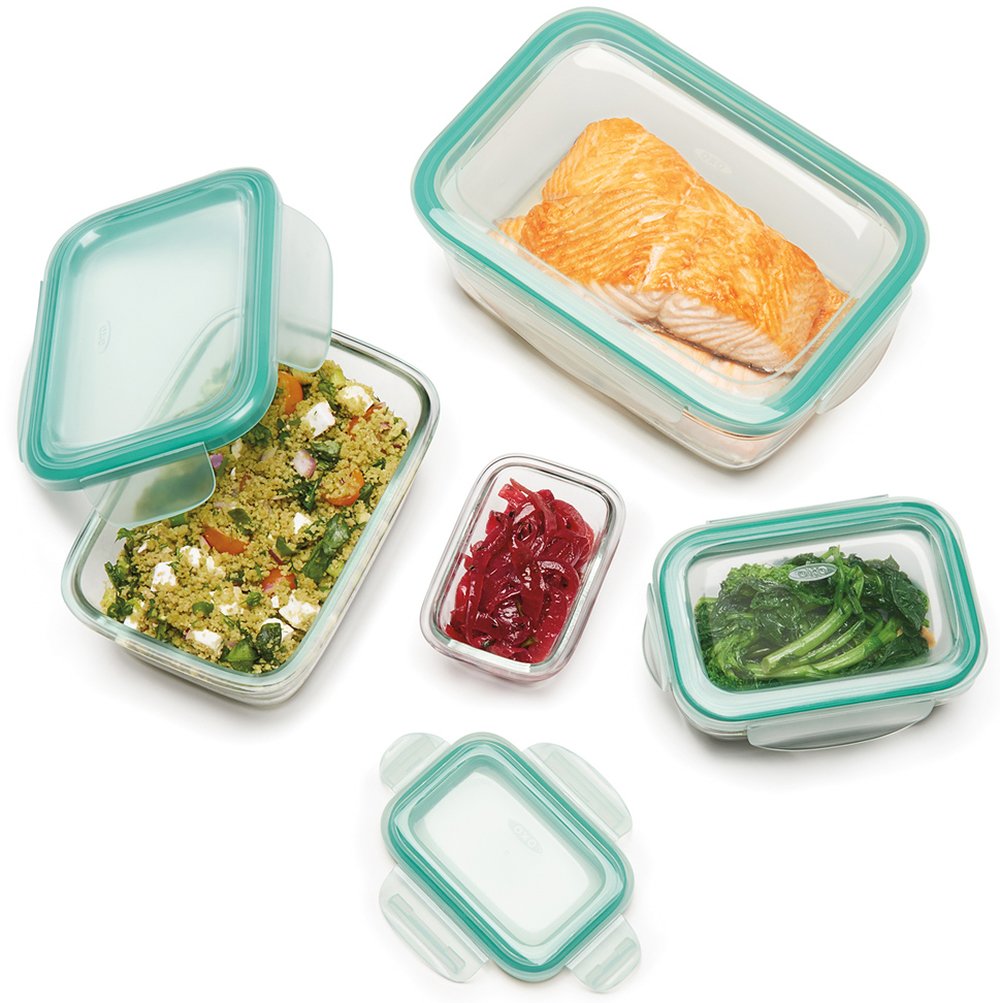 Borosilicate glass which is resistant to temperature change and can be used in oven, freezer, microwave oven