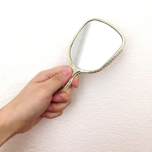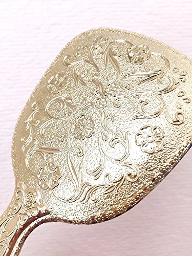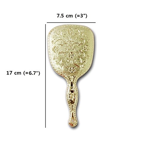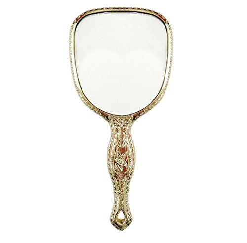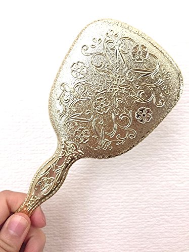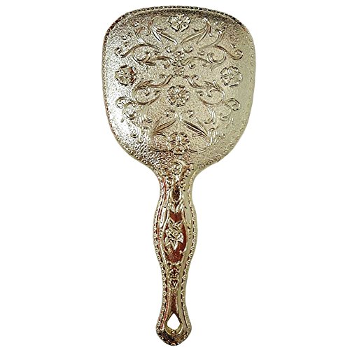 Antique Hand Held Vanity Mirror Floral Design Make Up Mirrors Portable (Gold)