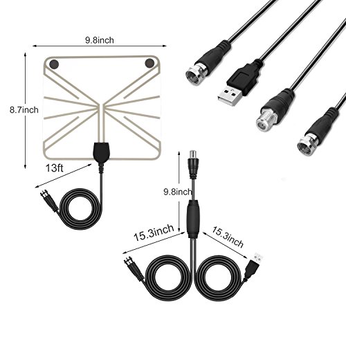 10FT Coaxial Cable: - The long cable makes the indoor TV Antenna easier for you to place it in your house to get the best reception, especially for customers whose televisions are quite far away from windows