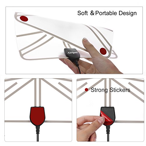 Portable Lightweight Design : - Airiper Digital TV Antenna is designed extremely thin and lightweight, you can hide it behind the TV, lay flat on table, stick it high on window or put it anywhere, brings you hundreds of crystal clear digital & HD shows