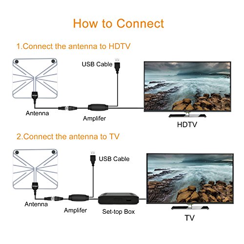 Detachable Amplifier Kit - 0-35 miles: You don't need to connect your TV Antenna to it for a better reception; But for 35-50 Miles, better to connect it to the amplifier for expanding signals