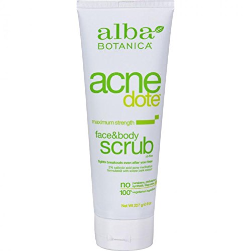 -. Binding : Health and Beauty -. Brand : Alba Botanica -. Feature : Acnedote -. IsAdultProduct : 0 -. PackageQuantity : 1 -. ProductGroup : Health and Beauty -. ProductTypeName : HEALTH_PERSONAL_CARE -. Title : Alba Botanica Acnedote, Face & Body Scrub, 8 Ounce by Alba Botanica