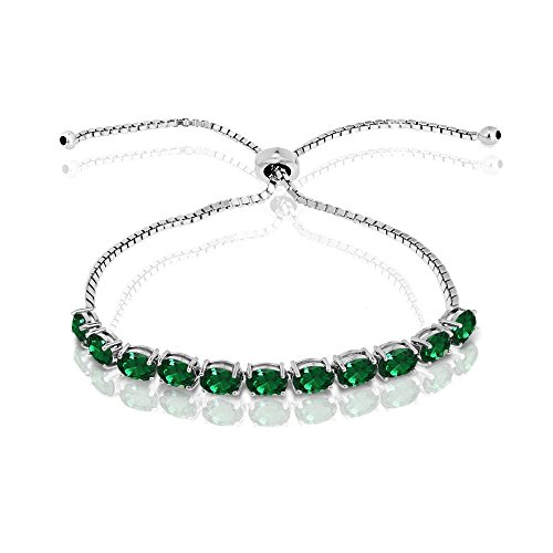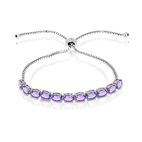This stunning sliding adjustable bracelet features prong-set 6x4mm oval-cut genuine, created, or simulated gemstones. The bracelet adjusts to fit your wrist from 3-inches up to 10-inches long and is crafted of fine sterling silver.