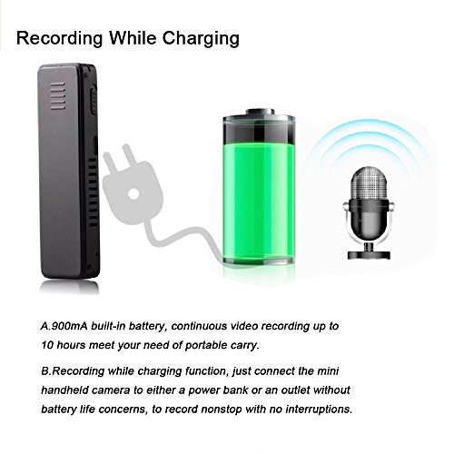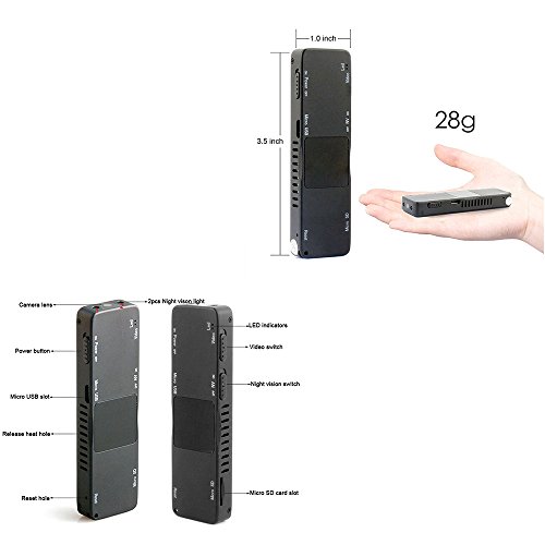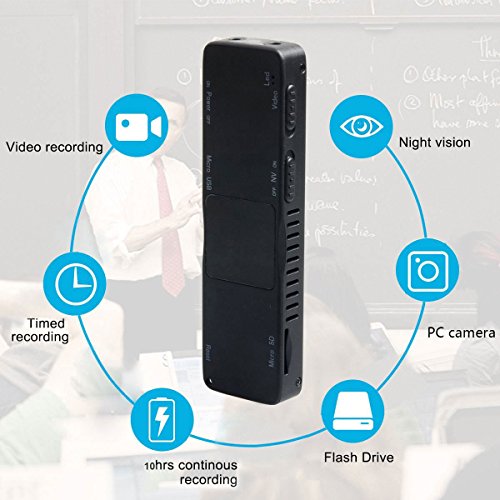 -. Feature : 1.Mini and Portable -- The world's smallest nanny cam, with a night vision visual range up to 10 - 15ft and 75 degree wide view angle which are conceal, it can work as a regular mini video camcorder to capture any interesting moments, it's perfect for any portable tools and easy to carry. / 2.Sync Time and Loop Recording -- You can sync the real recording time via PC to tell you what and when it was happened, when the memory is full, it will automatically overwrite the oldest video files with new ones, no longer worry about stop recording because of full memory, supports SD card max 32GB (NOT INCLUDED). / 3.Power Battery Life -- This pocket mini camera, built-in rechargeable battery supports continuous video recording up to 10hours after a fully charged, and thanks to its recording while charging function, you can just connect the mini handheld camera to either a power bank or an outlet without battery life concerns, to record nonstop with no interruptions. / 4.Easy to Use -- Simply slide the switch to start and stop recording, very user-friendly, it will automatically enter the video recording state when power on, capture video according to your need, 2pcs IR LED lights for clear night vision in a low minimum illumination. / 5.Security & Surveillance Camera -- You can hide it to shooting photos and videos without anyone noticing, recording videos without bright or flash light, used as a security & surveillance camera to protect home, family and valuables, nanny cam, pet sitter cam, housekeeper cam, business cam, view and playback on PC and Mac via USB cable or card reader, NO driver needed. (customer service: zarsson.us@hotmail.com)