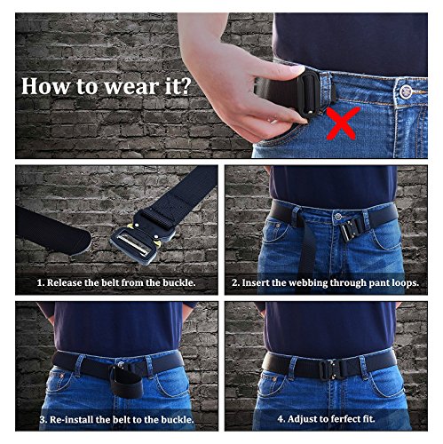 Binding : Apparel Product Description ☆Quick release, heavy duty buckle built to last, comfortable and secure.The quick release functionality is intuitive and smooth when you push the two golden tabs down at the same time. If just one tab is engaged, the connection will still hold and fully re-lock on its own. ☆Practical and Tactical. For all of life's adventures. Made of durable 100% nylon and perfected from Austrian precision. Superior design and stylish looks - indoors or out. The sheer strength of our materials combined with uniquely bold looks make it the perfect choice - dressed up or down.This Belts are super versatile, look awesome with suit and tie, and are ideal for your most insane outdoor activities ☆Versatile enough for heavy-duty work, business casual attire, or crazy adventures. Belts save the hassle and money out of buying different belts for every occasion.