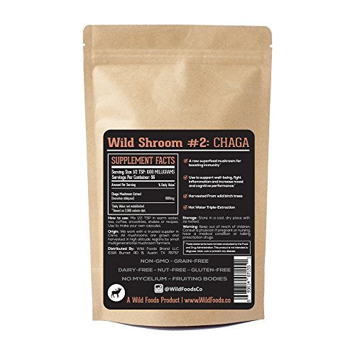 -. Feature : ANTIOXIDANT POWERHOUSE: Chaga mushrooms have one of the highest ORAC sources of any food on the planet. This makes Chaga a champion at scavenging free-radicals and preventing oxidative damage. Chaga can improve physical endurance, protect against ailments, suppress inflammation, stimulate immune function, and protect the gut. / POTENT ADAPTOGEN HERB: Favored as an adaptogenic herb used in modern society. Adaptogens are substances that promote bodily resistance to stressors and increase recovery time to life's natural challenges. Adapotens support the body to positively respond to depleted energy levels, hormonal imbalances, increased inflammation and similar stresses. / SMALL FARMERS: Wild Chaga is Non-GMO, Grain-Free, Caffeine-Free, 100% Natural, Hand-Harvested in the Wild, Small-Batch, Fruiting Body Only. / MULTITUDE OF USES: Mushroom powder is extremely versatile and can be added to coffee, tea, smoothies, shakes, soups, raw chocolate, and more. Add 2g (½ tsp) to each serving and enjoy! / Use code WILDSAVE at checkout when you Buy 2, 3, 4, 5, 6, 7 or more products and receive a larger discount the more you stock up! Mix and match any Wild Foods products. 100% MONEY-BACK GUARANTEE in the unlikely event you are not fully satisfied... simply return your purchase for a full refund.