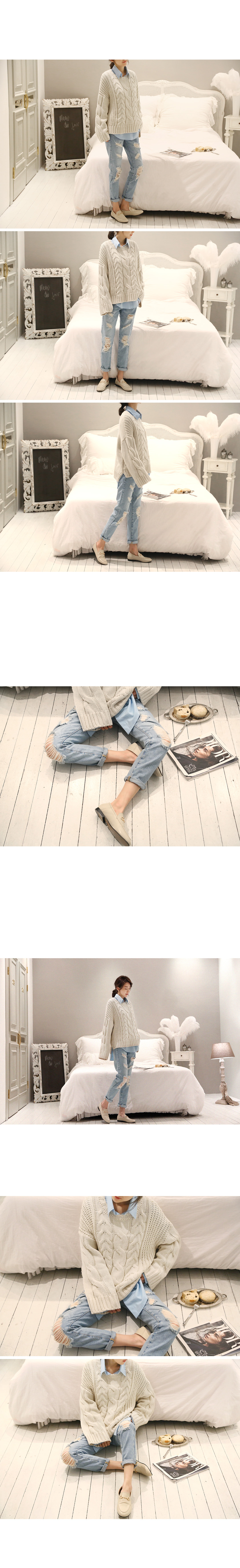 허벅지부터 무릎까지 거친 헤짐 덕분에 빈티지하고 멋스러워