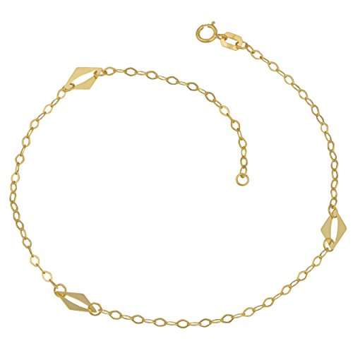 This gold anklet is beautifully crafted of high polish finished 10k yellow gold and features a station of diamond shaped gold link and secures with a spring ring closure. A stylish accessory that is perfect when wearing skirts, shorts, short pants or the like, this gold anklet is a definite must have.Feature