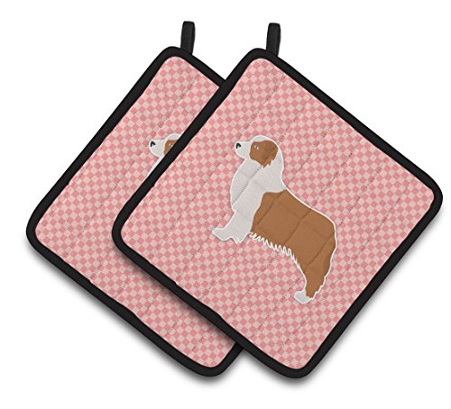 Caroline's Treasures Australian Shepherd Dog Checkerboard Pink Pair of Pot Holders BB3633PTHD, 7.5HX7.5W, Multicolor