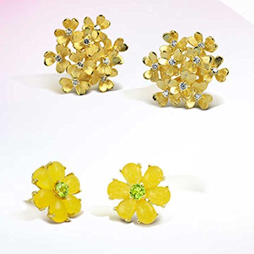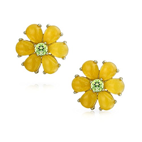Say it with flowers. Give the women or the young ladies in your life a gorgeous bouquet of flowers in a very unique way this holiday season, with the gift of our sensational flower stud earrings. Yellow Jade is thought to convey the gift of inner peace, joy and happiness. The yellow Jade petals on our studs surround a lovely prong set peridot color CZ stone at its center point. The stone is a vivid shade of light green. Our CZ peridot earrings are a perfect gift for women who celebrate an August birthday too. Our yellow flower earrings are guaranteed to make a sensational gift for anyone who loves flowers and embraces the pastel colors of spring and summer.Feature
