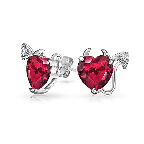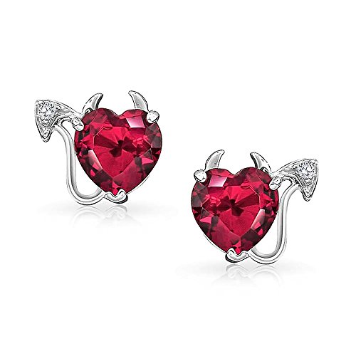 These .925 silver devil heart studs are the perfect mix of mischief and fashion. Give these simulated ruby earrings to a July baby and watch her grin devilishly. They are the perfect hint of naughty, with two horns poking out and cz clad tail at sides.