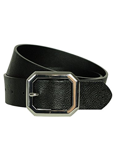 -. Feature : Center bar buckle / Five notches / Pebble textured faux leather / Lightweight / 1 3/8" width