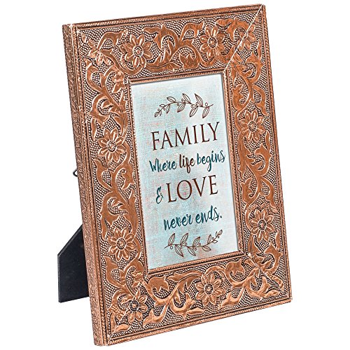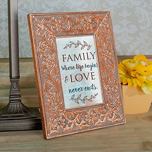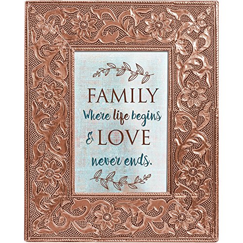Family Life Begins Love Never Ends 8x10 Stamped Metal Copper Finish Photo Frame Plaque