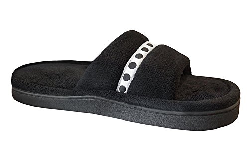 Isotoner Women's Ribbon Trim Slide Slipper will provide your feet with the ultimate comfort. With its microterry material you can treat your feet to a slipper that is perfect for travel or home. Featuring an open toe and ribbon detail on top. These slippers are perfect for spring and summer All Isotoner slippers are fully machine washable! Available in an assortment of colors Black, Taupe, Rose Violet Sizes 6.5/7, 7.5/8, 8.5/9, 9.5/10Feature