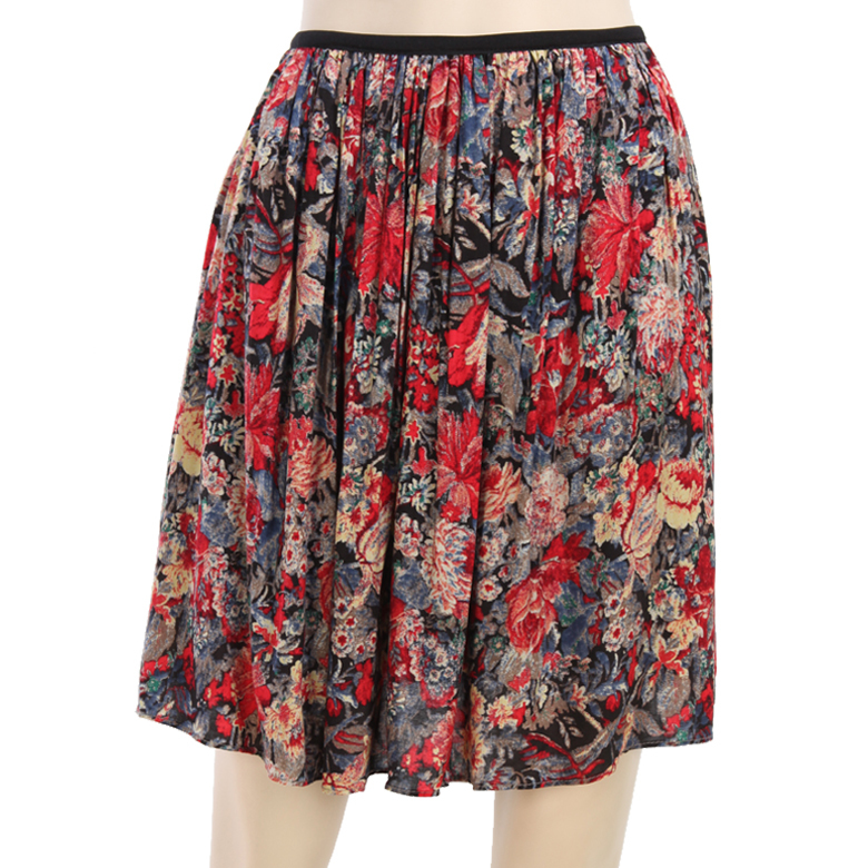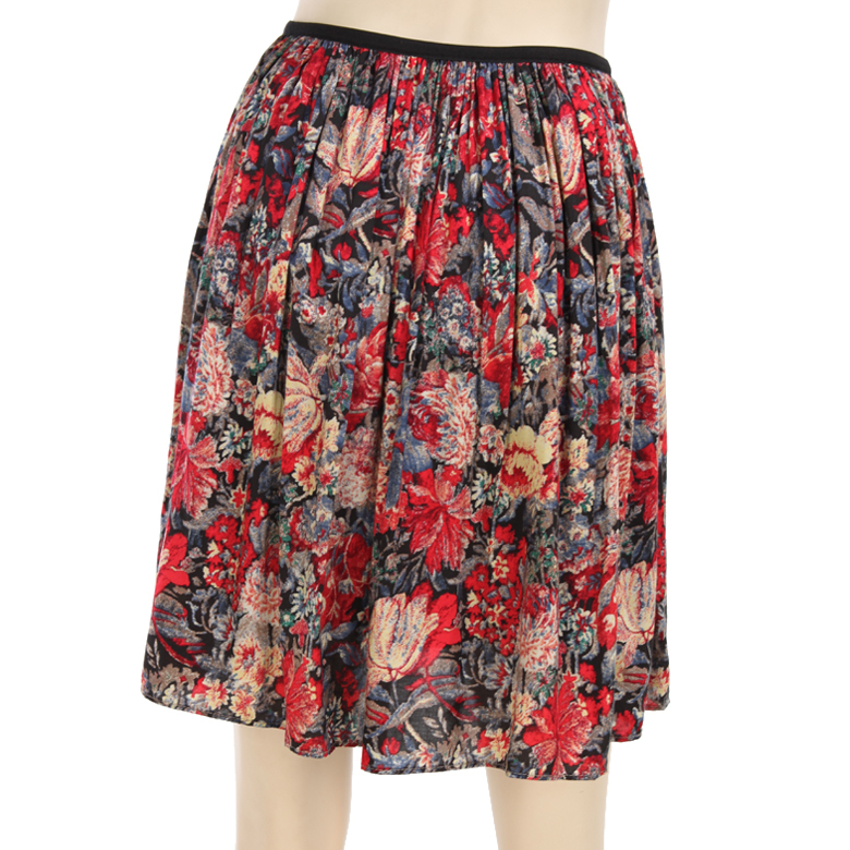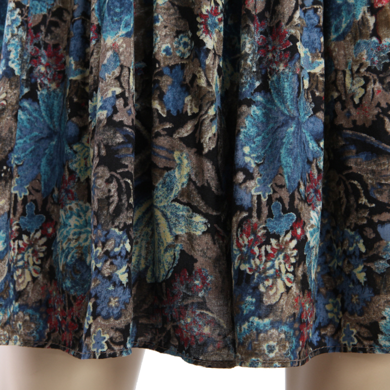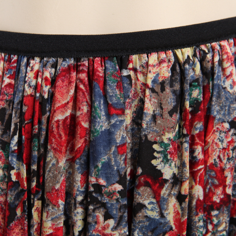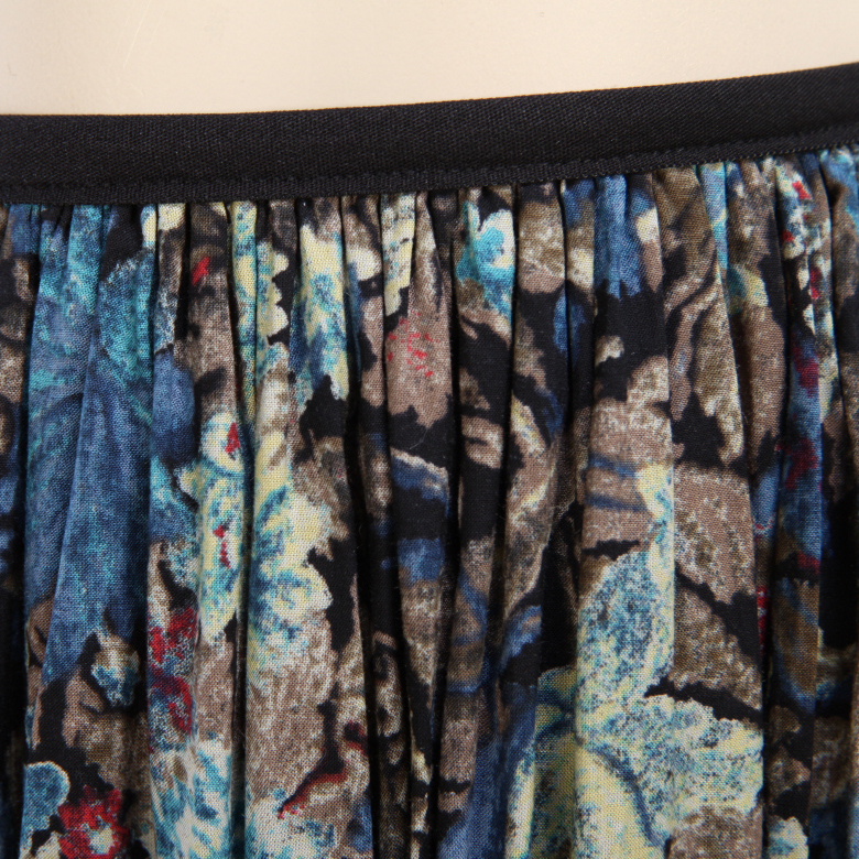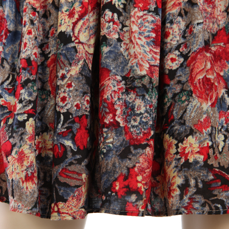 엔틱한 플라워나염에 풍성한 플리츠 주름의 플레어로