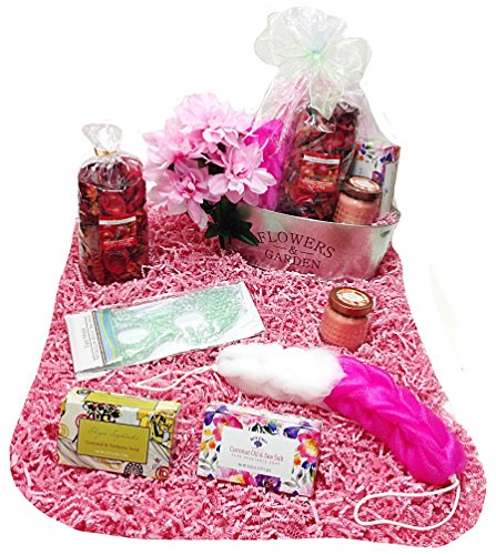 Aromatics & Bath Mothers Day Gift Basket Planter - Potpourri, Candle, Soaps, Eye Mask, Sponge & Flowers (L)
