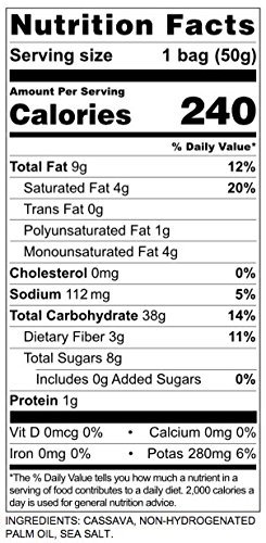 Artisan Tropic Sea Salt Cassava Strips are a taste unlike any other. Unlike potato chips, cassava strips are more fiberous, giving each bite a fuller snacking experience. Because of the long strip cut they have, they are perfect for dipping in guacamole or salsa. And no worries, we use Sea Salt to provide you with more beneficial minerals! That's what we like to call: Healthy. Snacking. Redefined.