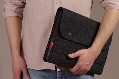 With a special unit mass of 900g/m² and a thickness of 3mm it is very shock absorbing for your device. Wool felt is water repellent, antistatic, recyclable and very soft to the touch.