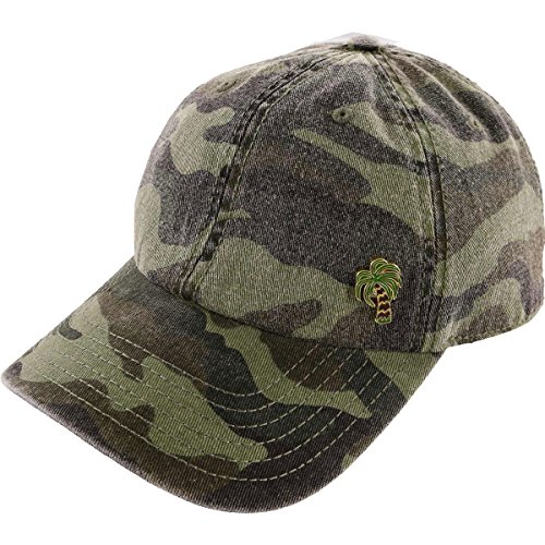 Product DescriptionWashed Twill Baseball Hat With Allover Camo Print And Palm Tree Pin. Adjustable Back With Logo Flag Label.0