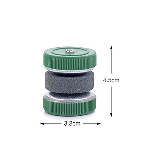 -. Feature : Knife sharpener has two plastic wheels / Super easy and intuitive operation / Color:green+red / Size: Height:about 4.5cm, diameter : about 3.5cm / Quantity: 2PCS(green+red)