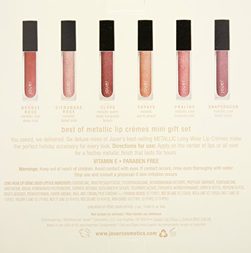 You asked, we delivered. Six deluxe minis of Joker's best-selling METALLIC Long-Wear Lip Crèmes make the perfect holiday accessory for every look. Bronze Rose - Metallic Cool Deep Rose Carronade Rose - Metallic Ballet Pink Clove - Metallic Warm Deep Burgundy Brown Papaya - Metallic Warm Peach Praline - Metallic Cool Bronzed Pink Snapdragon - Metallic Cool Frosty Violet