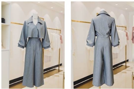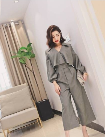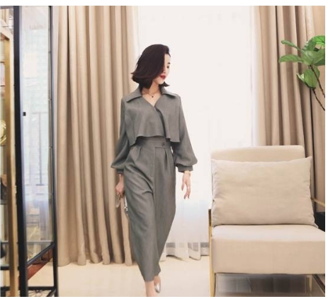ショート丈のコートとワイドパンツをあわせたようなデザインが新しい!