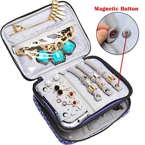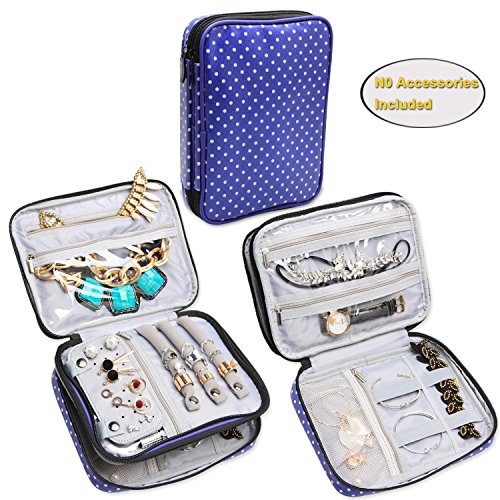 - LOTS OF COMPARTMENTS FOR PRECIOUS JEWELRY -- Patent pending. Double layer with zipper closure. The jewelry holder with individual pockets to display your precious items, rings, earrings, bracelets, pendant, watches and more.