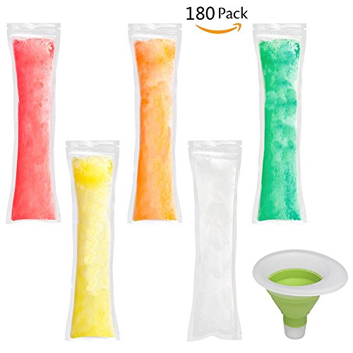 PACKAGE INCLUDES - 180 pieces Ice popsicle molds bags with clever zip lock tops and with a funnel for free. Enough quanlity to meet your needs.
