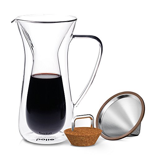 Studio : Bolio Designs Publisher : Bolio Designs Product Description Experience the improved coffee flavor and aroma only available with a Bolio pour over coffee maker, Stainless Steel Double Wall Cone Dripper Bolio is the only pour over coffee maker to feature the exclusive basket design. The stainless steel basket lifts the filter away from the glass carafe wall to allow for maximum breathability and create maximum flavor extraction. Improve your flavor and decrease your pour time with our exclusive coffee innovation. Use the Bolio paperless pour over coffee dripper for delicious coffee without paper filters. The filter allows essential coffee oils to seep through the filter and into your coffee for a full flavor experience without sediment. Add your coffee grounds directly into the stainless steel filter and start the brewing process. The stainless steel filter offers a very fine filtration. Our high quality dual layer food grade stainless steel design makes the perfect cup of coffee every time. Additional Benefits of Decanter Coffee Dripper: - Improved coffee flavor and aroma and keeps coffee hot