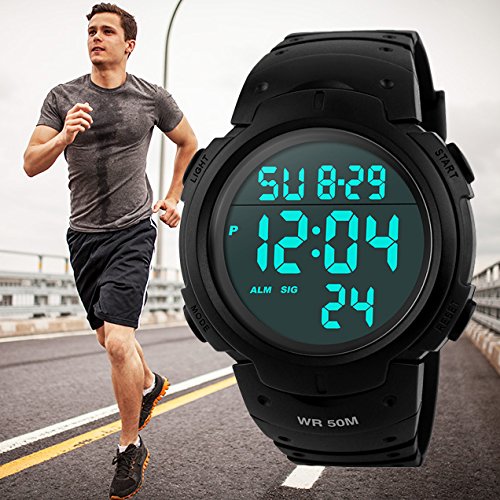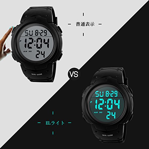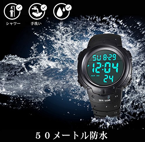 -. Title : メンズ デジタル腕時計 防水腕時計 50メートル防水 ブラック大文字盤 ストップウオッチ アラーム LED バックライト タイマー機能付き ZAYIYA