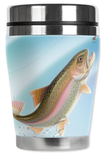 Mugzie Leaping Fish "Mini" Travel Mug with Insulated Wetsuit Cover, 12 oz, Blue