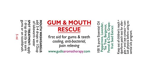 -. Feature : Powerful treatments for toothache, gum infections canker sores, sore throats. / After oral surgery, teeth cleaning or as a sore throat gargle dilute into a mouthwash / Maintains healthy gum tissue and bacterial infections. / For persistent tooth ache, see your Dentist. / European Essential Oil blends by our certified Aromatherapist