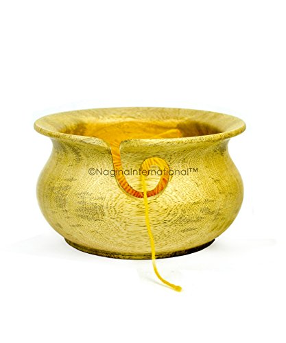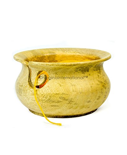 Large Mango Wood Crafted Premium Yarn Storage Bowl With Innovative Dispenser Curl | Pot Styled Bowl For Yarn Storage & Holder | Nagina International