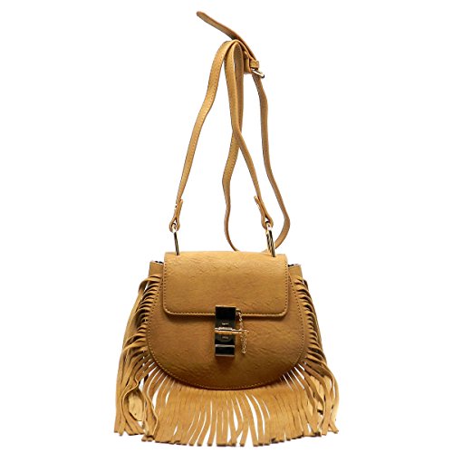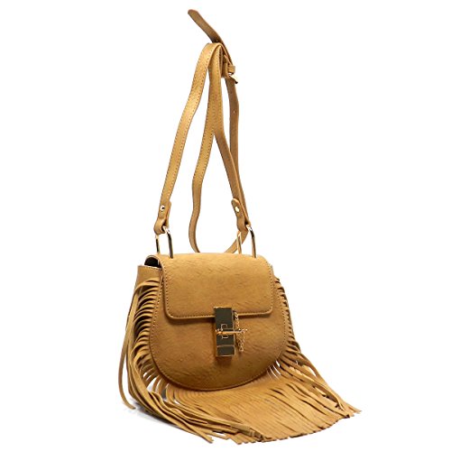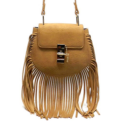 Elphis Western Fringe Tassel Twist Lock Cross Body Bag Satchel Shoulder Bag