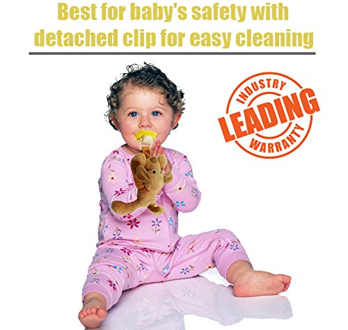 - Title : Stuffed Plush animal pacifier holder with two BPA free pacifiers from Slicksaves, best for baby's safety with detached clip for easy cleaning, best to soothe and promote good night sleep for newborn!