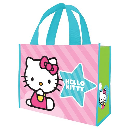 Nearly 40 years after her debut, Hello Kitty has become one of the most identifiable brands of our time. Hello Kitty is now featured on a wide range of drink ware and shopper totes, offering hip and functional products for fans of all ages. The Hello Kitty Pink Stripes Large Recycled Shopper Tote is strong (made of 25-percent recycled materials) and water resistant. It is great for shopping and a good alternative to a traditional gift bag. A color hang tag is included. The strap features a 8-inch drop and wipes clean with a damp cloth. Making retro cool since 1957, legends live on at Vandor - suppliers of hip and functional products for fans of all ages.Feature