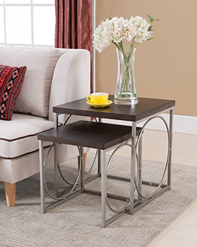 -. Title : Kings Brand Furniture 2 Piece Wood Nesting Tables Set, Chrome/Walnut