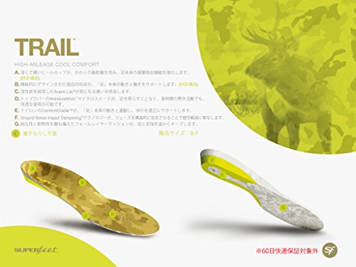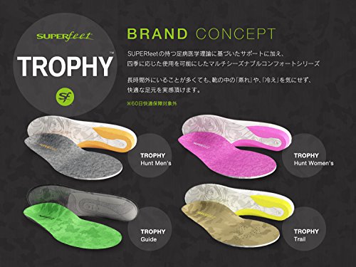 Studio : Superfeet, Inc. (Insoles) Publisher : Superfeet, Inc. (Insoles) Binding : Apparel Product Description Fits best in: Superfeet trail insoles fit many roomy hunting boot styles that have factory insoles you can remove. Gear up for the early season. Superfeet trail™ keep you cool and comfortable while scouting in the late summer heat. Featuring an exclusive scentlok® layer, aerospring™ impact foam and silent step™ stabilizing shape, trail insoles provide long-lasting comfort when you’re miles out. The ventilated forefoot and ground-sense™ impact dampening technology make the hours in the field easy on your feet. For the american outdoorsmen and women responsible for protecting the land and wildlife, Superfeet created the trophy series ? the first family of premium insoles designed specifically for the hunt. More stability = greater accuracy features more comfort and stability = greater accuracy scentlok® technology for long-lasting odor control silent step™ stabilizing shape ground-sense™ impact dampening technology the flexible heel cradle and foam provide the shape that supports the foot and arch. No latex, nickel sulfate, formaldehyde or preservatives. Vegan. How it works: Superfeet trail insoles adapt the generic, 2-dimensional surface inside of your roomy hunting boots to your 3-dimensional foot. The distinct Superfeet shape helps to stabilize the foot, while the flexible heel cradle and full-length foam provide support and comfort with every step. 0