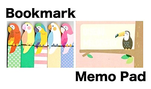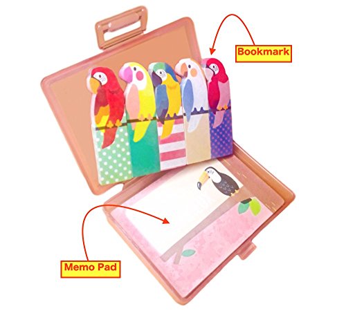 Cute Kawaii Japanese Office and School Supplies Birds Animal Post-it Bookmarks Index Tabs Sticky Flags Note Memo Pad - Portable Hard Plastic Case, Holder Storage Box Set