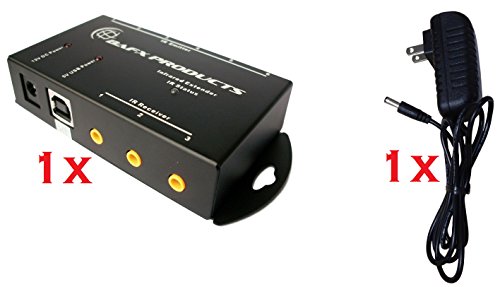 Kit includes: 1-Distribution block; 1-IR Receiver; 1-Standard power plug; 4-Dual IR Emitters for 8 devices; 1-Manual; May ALSO be powered by USB cord as well (USB power cord NOT included)