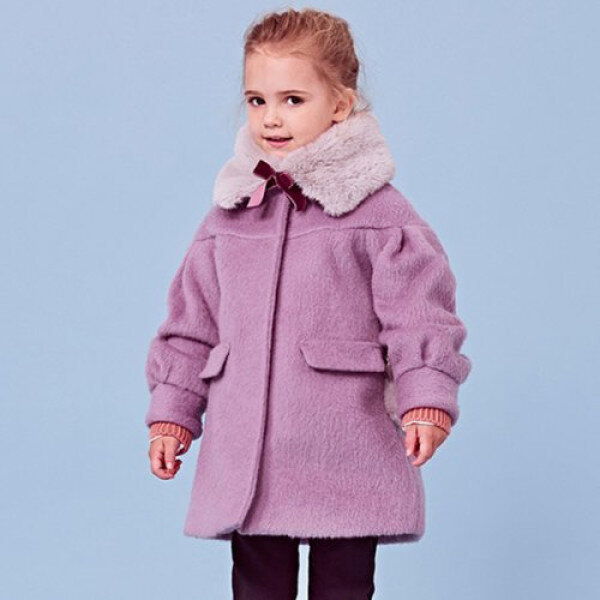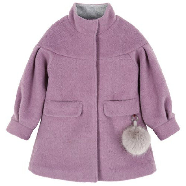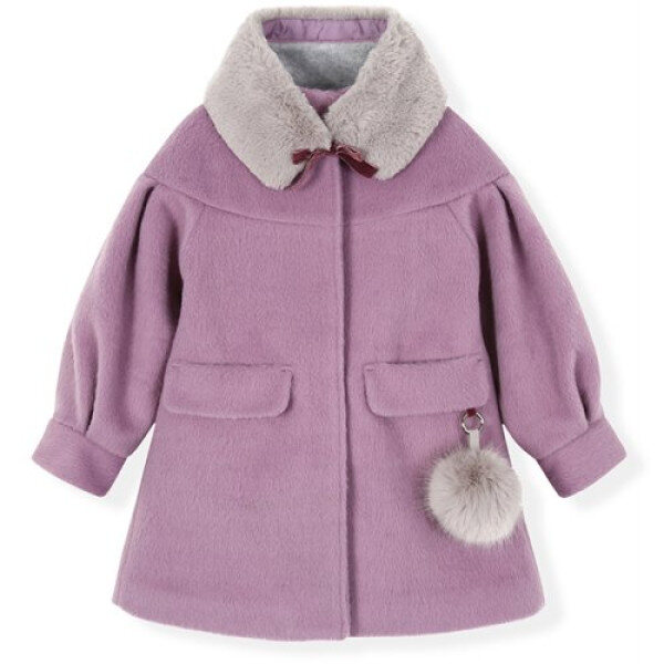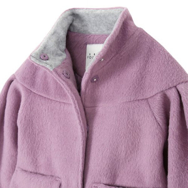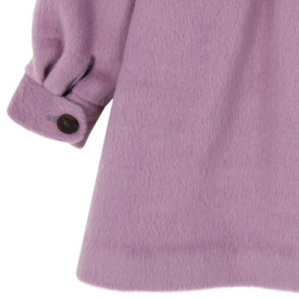 소매에 풍성한 주름이 들어간 사랑스러운 보라색 코트예요.따로 또 같이 착용가능한 고급스러운 컬러감의 카라와 귀여운 폼폼이 장식도 더해져 귀엽고 사랑스러운 아이템입니다.안감은 솜을 넣어 보온성도 아주 좋답니다~