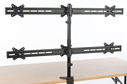 -. Feature : Innovative stand provides accommodation for (6) 23" TVs, (3) on each arm. / Height adjustable brackets enable users to situate panel screens in vertical or horizontal orientation. / Detachable grommet transforms into desk clamp for permanent fixture placement. / Space-saving design minimizes clutter on desk top. / Displays2go SKU#: LMMLT6H2